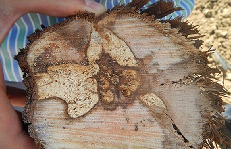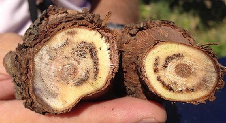 Hastalık daha çok yaşlı asmalarda dikkati çeker. Bazen çok sıcak yaz aylarında, adeta yıldırım çarpmış gibi yaprakların birden bire solup kuruduğu, genç sürgünlerin bunu izlediği ve asmanın aniden öldüğü görülür. Bu durumda asma bazen son bir çabayla gövdesinden obur sürgünler çıkartarak yaşama mücadelesi verir. Gövde ve kalın dalların enine kesitlerine baktığımızda merkezin çevresinde hastalıktan dolayı daha koyu renkli sert dokulu bir kuşakla çevrilmiş olduğu görülür. Yıldan yıla asmanın içi kavlaşır ve kavlaşma içten dışa doğru olur.
