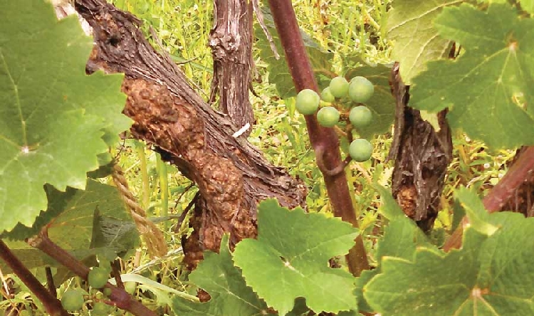 Hastalıklı asmaların beslenmesi zayıflar, gelişimi durur ve zamanla verim düşer. Özellikle yaralanmış kök ve gövde dokularında ortaya çıkar ve bulaştığı bağlarda kalıcı hale gelebilir.