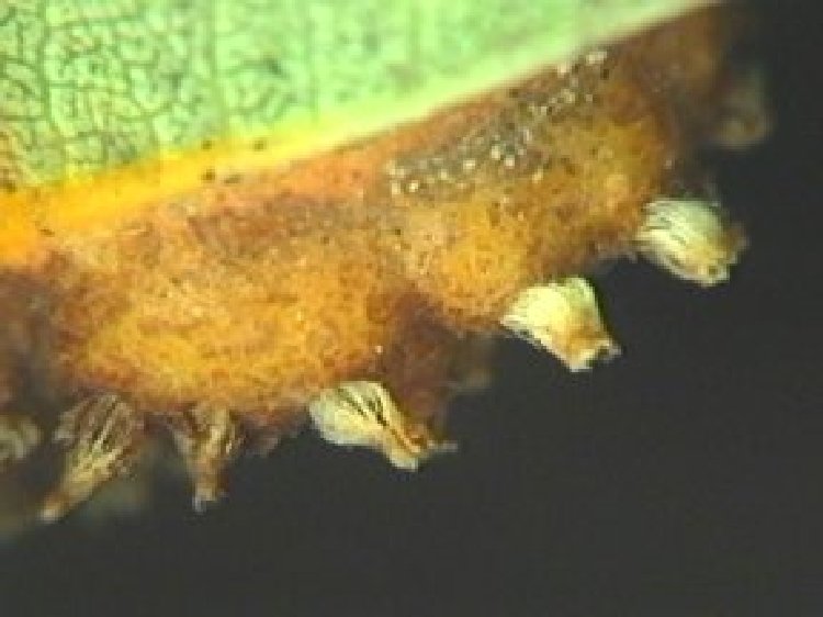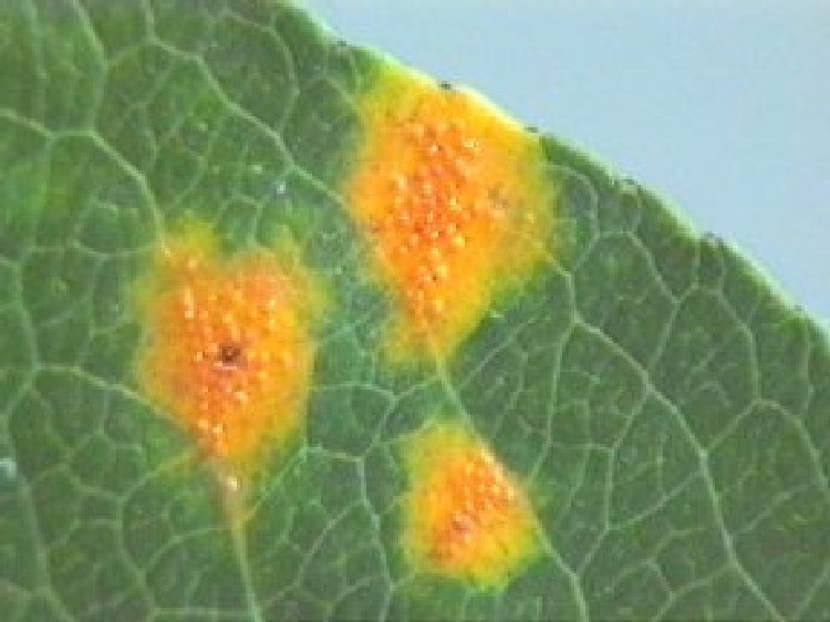 Zamanla bu lekeler turuncu-kırmızı pas rengini alır ve yapraklar dökülmeye başlar.