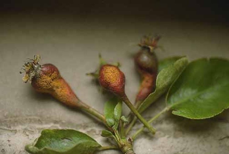 İlkbaharda sporlar armut ağaçlarına taşınır ve enfeksiyon başlar.