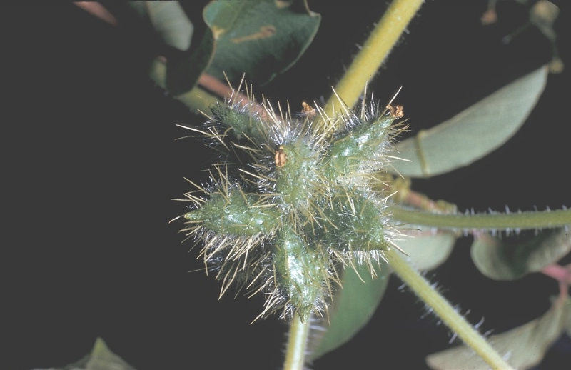 Meyve ve Tohum: Meyveleri küçük, oval, toplanmış salkımlar halinde bulunur ve üzerleri sert, kancalı dikenlerle kaplıdır (bu nedenle'Dikenli Hıyar Sarmaşığı' denir). Bu dikenli meyveler, hayvanlara ve makinelere yapışarak tohumların yayılmasını sağlar.
