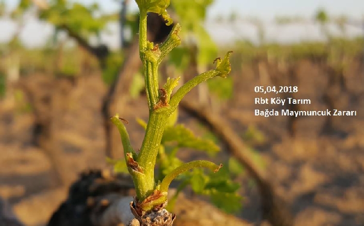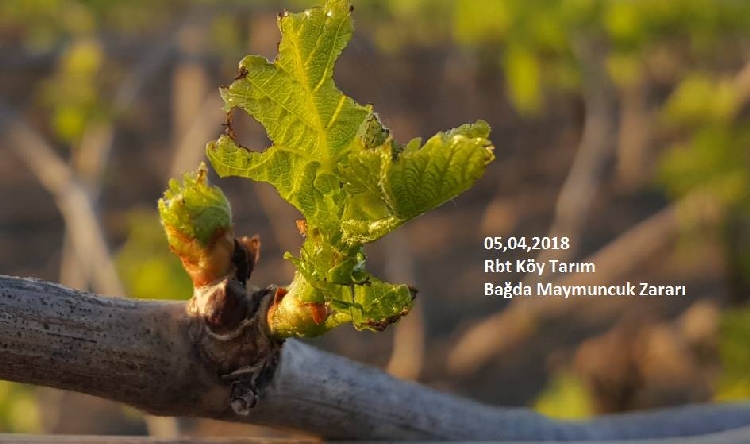 Bağ maymuncuğu: İlk erginlerin görüldüğü ilkbahar başında (Mart–Nisan) ilaçlama yapılmalıdır.