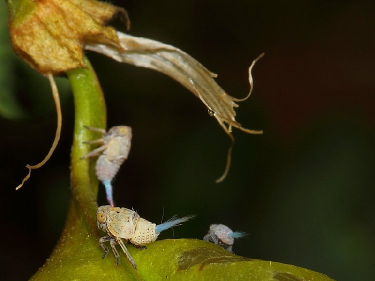 Uzunluğu 1 mm kadar olan yumurtalar, ağaçların gövdelerine ve ana dallarına, çamurdan yapılmış paketler içerisine, 2 sıralı ve 5-14'lük gruplar halinde bırakılır. Yumurtalar elips şeklinde ve kırmızımsı kahverengindedir. Yüzeyi düz olup üzerinde herhangi bir desen bulunmaz. Yumurtadan yeni çıkan nimfler önce kavun içi rengindedir. Nimfler geliştikçe renkleri, griye ve ergin olmaya yakın, dişinin rengine dönüşür.