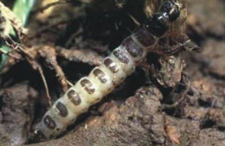 Larvalar, toprak yüzeyinin hemen altındaki gövde kısmını kemirir.
