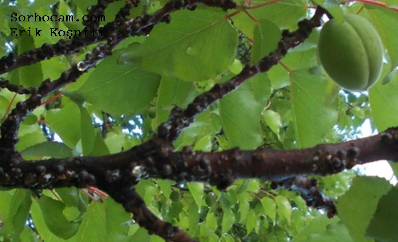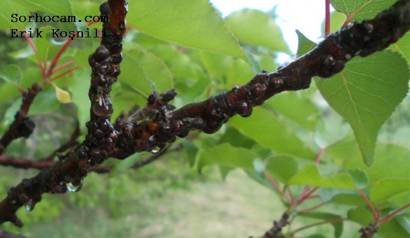 Esas olarak sert çekirdekli meyve ağaçlarında bulunur. Bunlar içinde en çok eriklerde görülür.