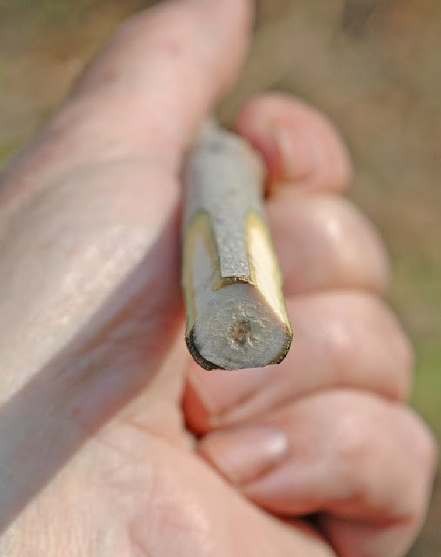 Kalem üzerinde de aynı şekilde, 3 dilim yapmanız gerekir. Bu dilimler yaklaşık 2-3 cm uzunluğunda ve birbirine paralel olmalıdır.