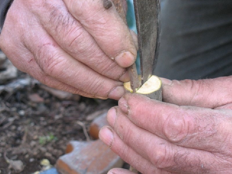 Aşı yapacağınız ana bitkinin kabuğu dikkatlice kesilir. Bu kesik, dikkatlice açılır, böylece aşı materyali yerleştirilebilir.