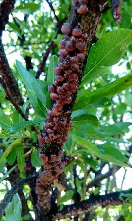 Meyveler kirli, parlak, yapışkan bir tabaka ile kaplanır.