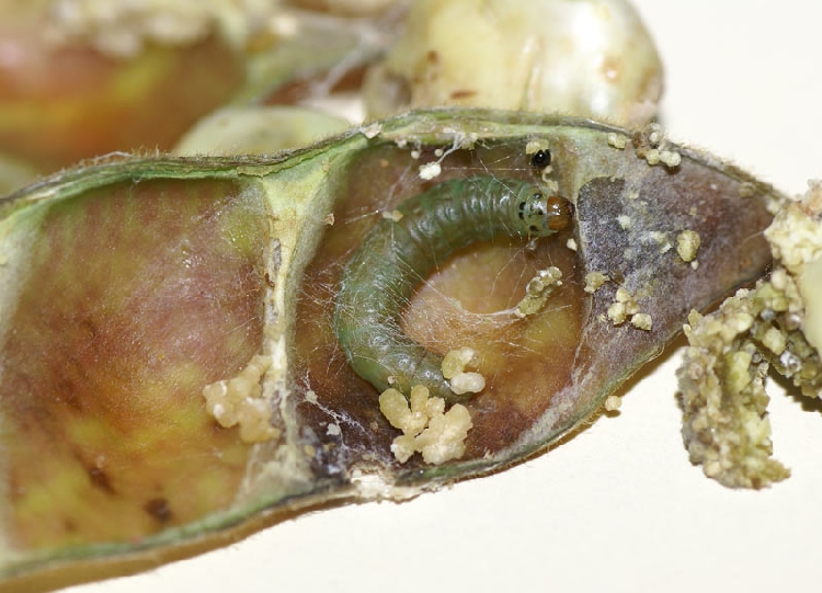 Larvalar tomurcuk, yaprak veya meyve içinde beslenir