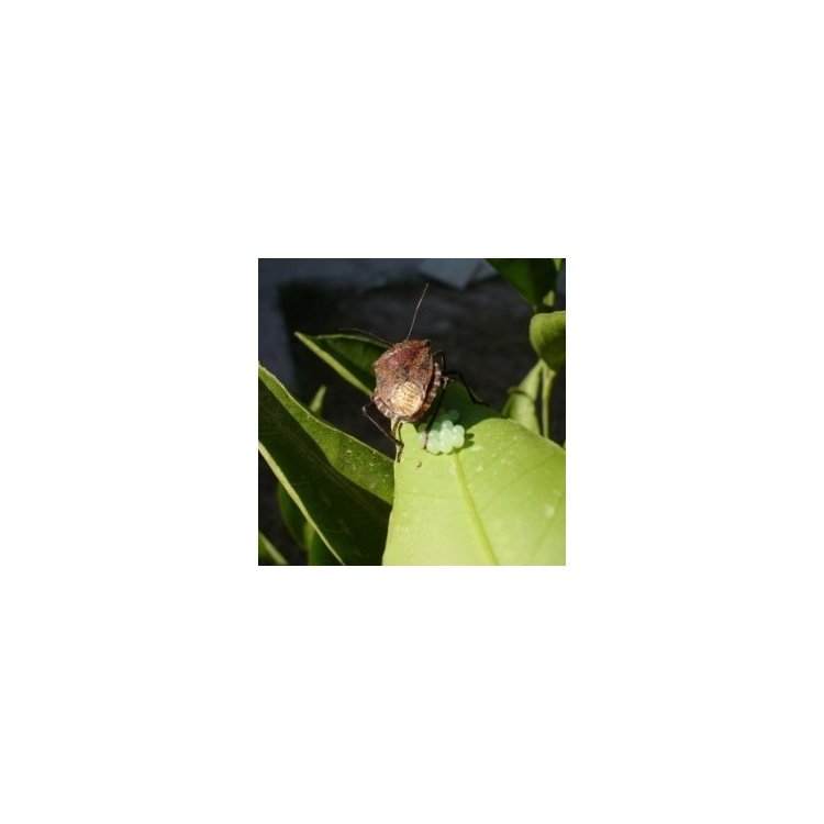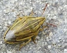 Baş üçgen şeklinde, ön kısmı sivridir. Orta kısımları koyu, kenarları açık kirli sarıdır. Üzerinde yan yana önden arkaya uzanan siyah ve kirli sarı çizgiler bulunur. Bacaklar kirli sarıdır. Bu böcek etrafa pis koku salgılar. Yılda bir nesil verir.