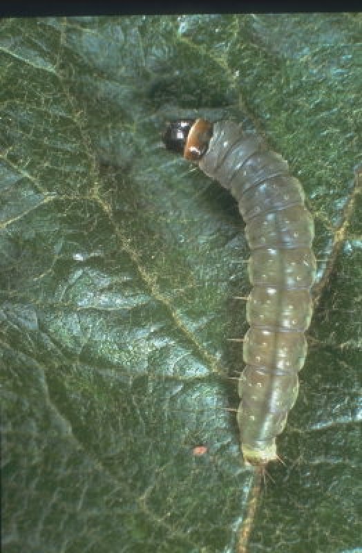 Larva (tırtıl): Açık yeşil veya sarımsı renktedir. Tırtıllar 15–18 mm uzunluğa ulaşabilir ve asıl zararı bu dönemde verir.