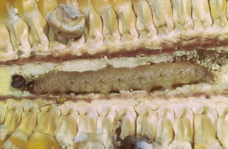 Larvalar mısır koçanlarının içine girerek mısır tanelerini deler ve tüketir.