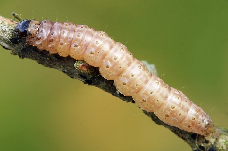 Larva: Silindirik, yeşilimsi veya açık kahverengi, baş kısmı koyu renklidir, 20–25 mm uzunluğunda.