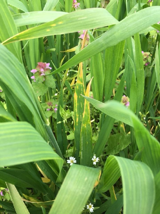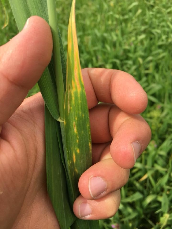 Hastalık, ilk olarak en alt yapraklarda görülür. Üst yapraklara yayılma hızı, çevre koşullarına ve çeşidin duyarlılığına bağlı olarak değişir. Hastalığın şiddeti, bitki olgunluğa yaklaştıkça daha az olmaktadır. Gelişme esnasında, yaprak dokusu içine gömülüdür. Olgunlaşmada epidermisin yarılıp, çatlaması ile beyazdan devetüyü'ne kadar değişen renkte spor kitlesi dışarı akar.