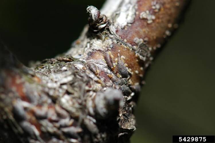 Virgül Kabuklu Biti, bitkiye hem özsu emerek hem de toksik maddeler salgılayarak zarar verir: