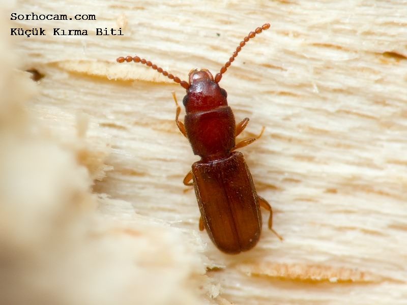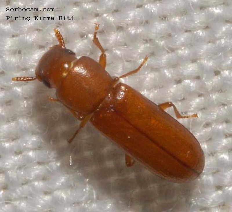 | Kırma Biti | Tribolium confusum | İkincil zararlı. Daha çok unlu mamuller, kırık daneler, makarna ve bisküvilerde bulunur. Unu kirletir ve ekşi koku verir. |