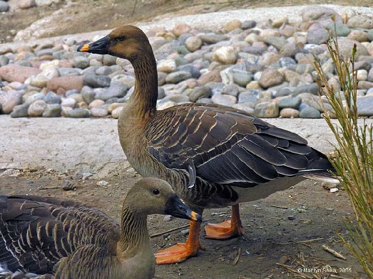 Renk: Beyaz tüyler, turuncu gaga ve ayaklar.