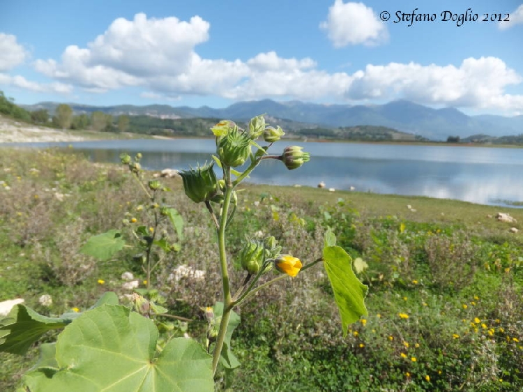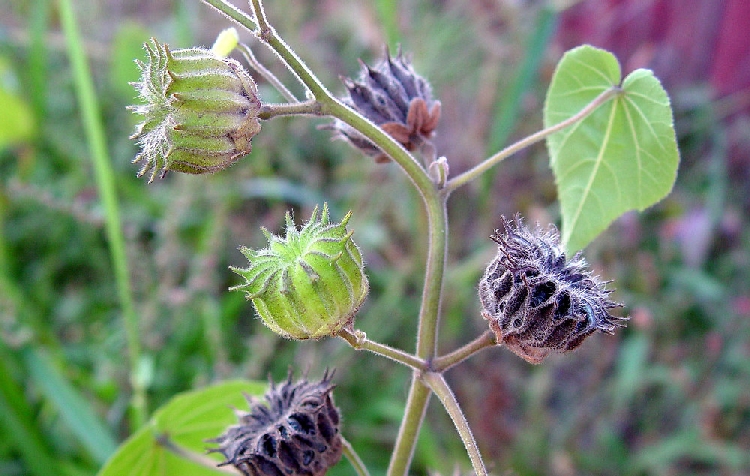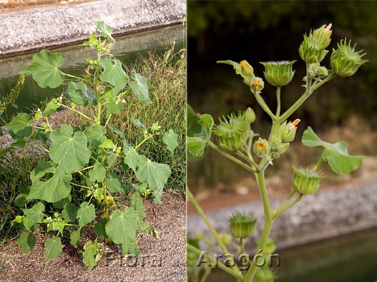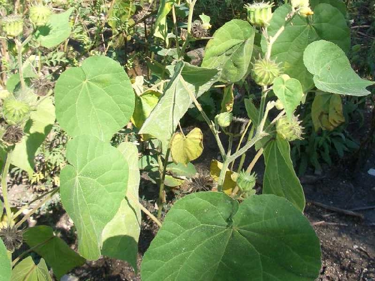 Bu bitki 2 m boyunda büyür ve 15-25 cmlikde geniş kadife gib kalp şeklinde yaprakları vardır. Çiçek tohumları serbest bırakmak için uzunlamasına bölünmüş düğme şeklinde 4 cm çapında sarı veya turuncu kapsüllere olgunlastiri. Çiçek ve bitkiler meyveli bir kokuya sahiptir.