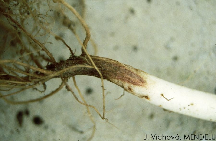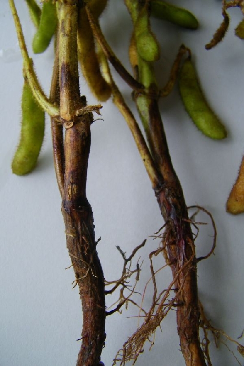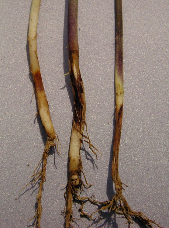 - Gövde ve kök boğazı üzerinde kırmızımsı-kahverengi, çökük yaralar meydana gelir.