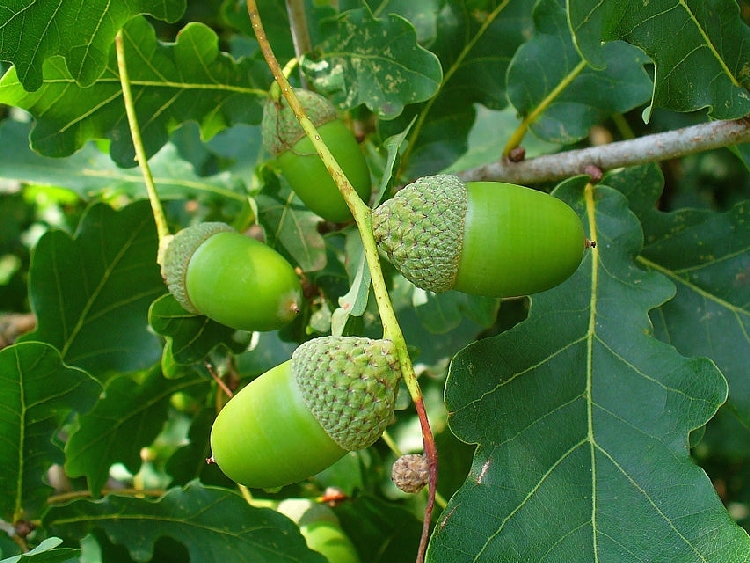 Yaprakları da formları gibi değişkenlik gösterebilir, loplu, dişli ya da düz kenarlıdır. "Palamut" adı verilen silindirik meyveleri bir kadeh içinde yer alır. Bazı türlerinin palamudu büyük ve tırnaklı olur. Tanen bakımından zengin olan bu tür palamudun şırası sepicilikte ve boya sanayiinde kullanılır. İçinde pelit denilen tohumu vardır. Pelit doku bakımından kestaneye benzer. Ancak, tadı acı olduğu için hayvan yemi olarak değerlendirilir. Meşe, alakarga ve sincabın kışın yemek için toprağa gömdüğü ya da kendiliğinden toprağa karışan pelitlerden ürer.