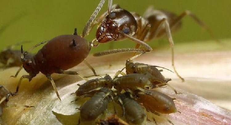 Karıncalar ve yaprak bitleri arasında mutualistik (karşılıklı fayda sağlayan) bir ilişki vardır: