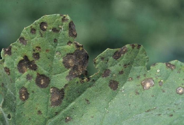 Yapraklarda küçük, yuvarlak ya da düzensiz kahverengi-gri lekeler oluşur.