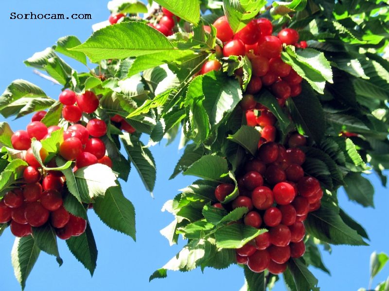 MERTON PREMİER: Orta mevsim (2 Haziran), meyvesi kalp şeklinde, iri (5,27 g), koyu kırmızı-mor renkli, orta sert, sulu, ince yapılı ve çok kalitelidir. Ağaçları çok verimli olup, hiç meyve çatlaması yapmaz. Yola dayanıklıdır.