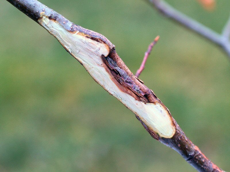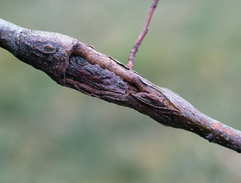 Bu yaralar bazen 20 cm'ye kadar ulaşabilmektedir. Yaralar genellikle dalın bir tarafında olmakta, bu dallar bir süre canlılıklarını sürdürebilmektedirler. Hastalık etmeninin yaşlı kanserlerin kenarlarında, ölü kabukların altında, çatlaklar içinde bazen dağınık bazen de kümeler halinde olan küçük, parlak, kırmızı renkteki periteslerinden boşalan askosporları ile yeni enfeksiyonlar başlar.