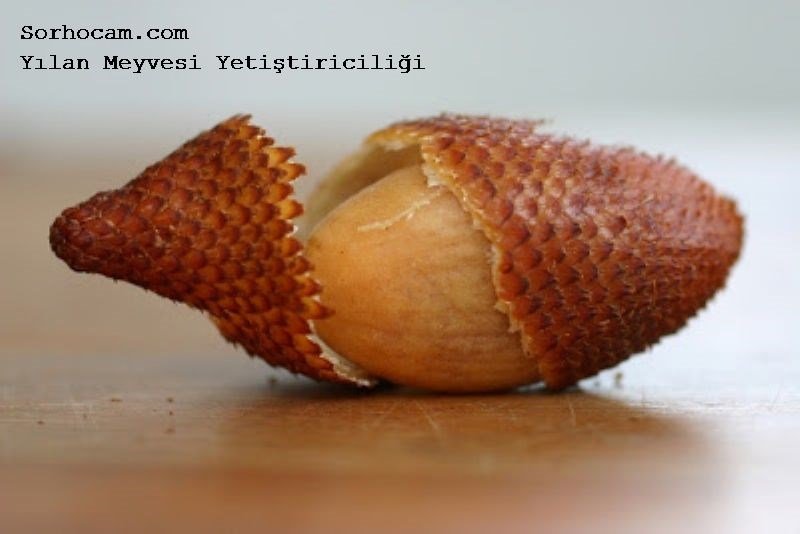 Yılan meyvesi dış görünümünden dolayı bu ismi almıştır. Meyve, palmiye ağacının bir türünde salkım şeklinde yetişir. Elmayı andıran tatlı ve hafif asidik bir lezzeti vardır. Taze şekilde ya da tatlı hamur işlerinin içine katılarak yenebilir. Malezya ormanlarında yetişen Yılan Meyvesi, aynı ormanda yaşayan maymunların favori besinidir. Yılan Meyvesi'nin en ilgi çekici özelliği ise %13,5 alkol oranına sahip olmasıdır. Bu oran üzüm şarabında %13′tür. Bu durumda meyveyi yiyen maymunların ne hale geldiğini tahmin etmek pek de zor değil.