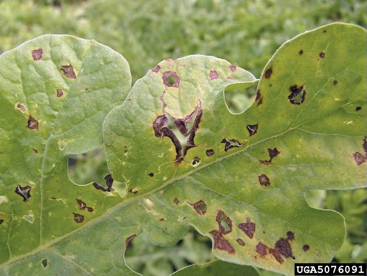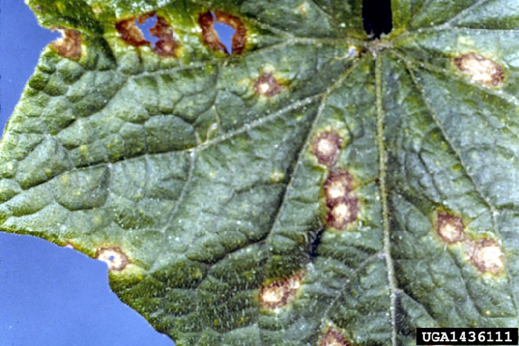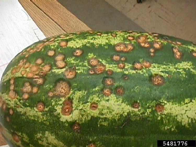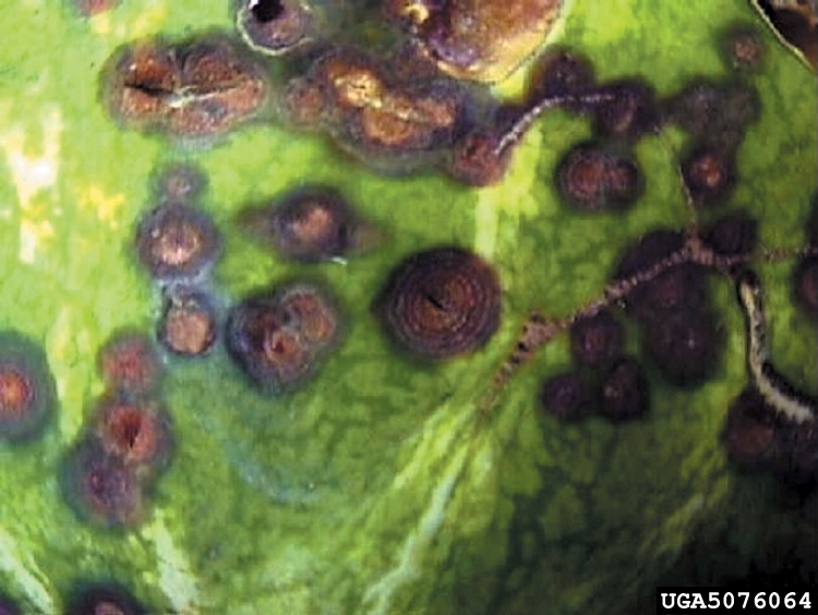 | Belirtiler | Yaprakta su lekesi, sapta çürük, meyvede batık lekeler |