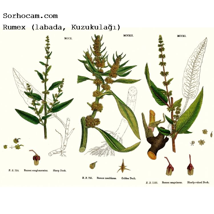 Rumex cinsi bitkiler, halk arasında labada ve kuzukulağı gibi isimlerle tanınır ve çoğunlukla Rumex acetosa, Rumex crispus, Rumex patientia gibi türleri içerir. Bu bitkiler hem yabani hem de kültür formunda bulunur ve bazı türleri sebze, bazıları ise tıbbi bitki veya yabancı ot olarak değerlendirilir.