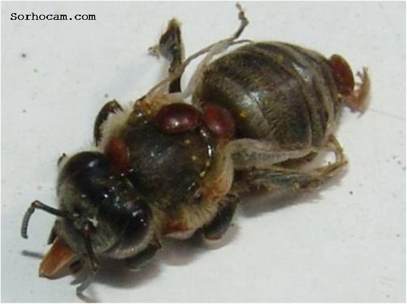 Varroanın dişisi oval görünümde ve koyu kahve renktedir. Vücut uzunluğu 1.1-1.3 mm, eni ise 1.5-1.7 mm arasında değişmektedir. Vücudun alt kenarı 4 çift bacak ile çevrilidir. Ağız yapısı sokucu ve emicidir. Gerek ergin gerekse larva ve pupa döneminde arının kanını emerek beslenir. Bu nedenle arıya her dönemde zarar verir. Erkek varroa, sarı-gri renkte yuvarlak görünümlü, dişi varroaya oranla daha yumuşak bir kitin ile kaplıdır. Erkek varroalar dişi ile çiftleşme sonrası öldüklerinden yetişkin arı üzerinde görülmezler.
